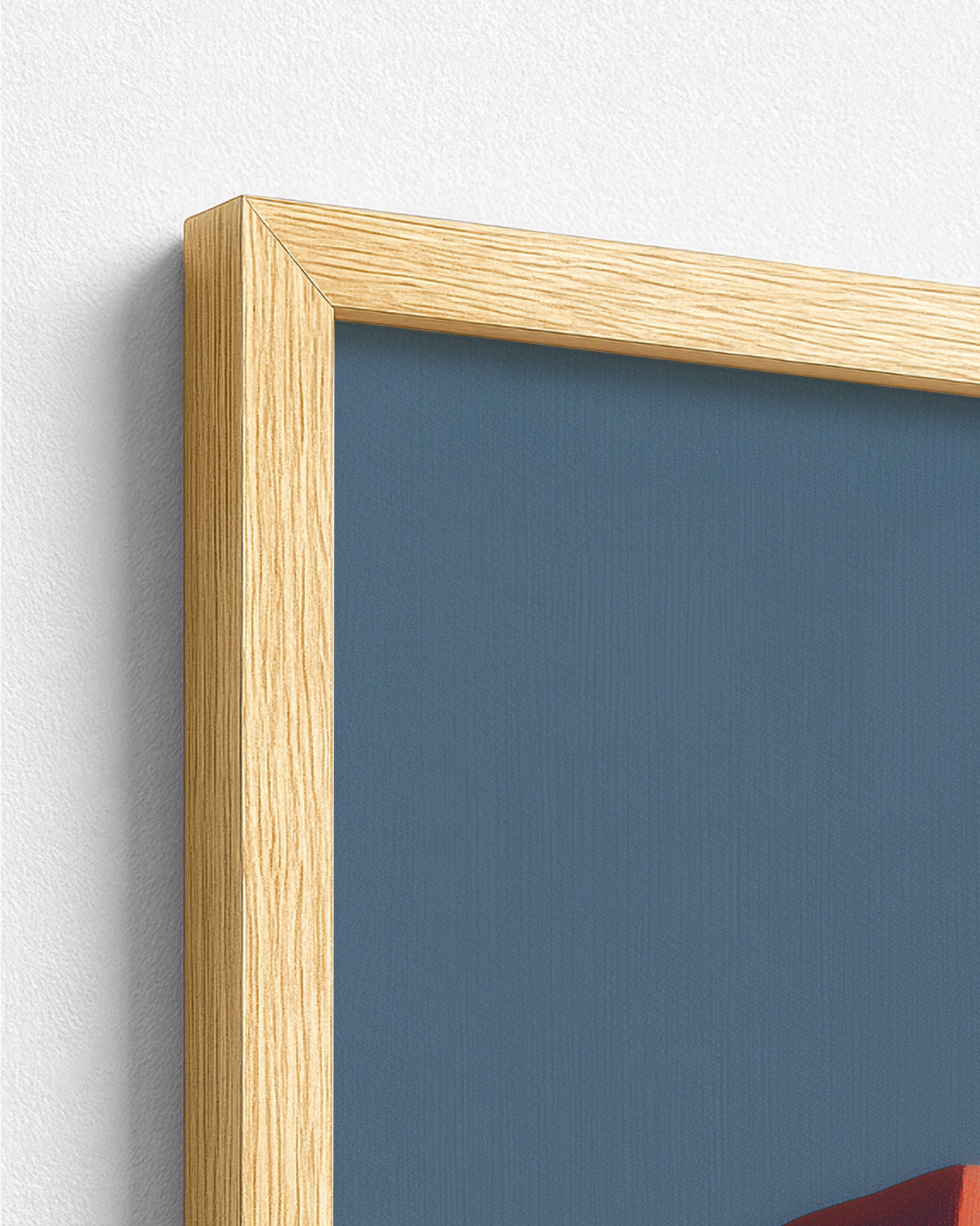 Premium artwork printed on high-quality paper, professionally mounted within a durable pine wood frame.