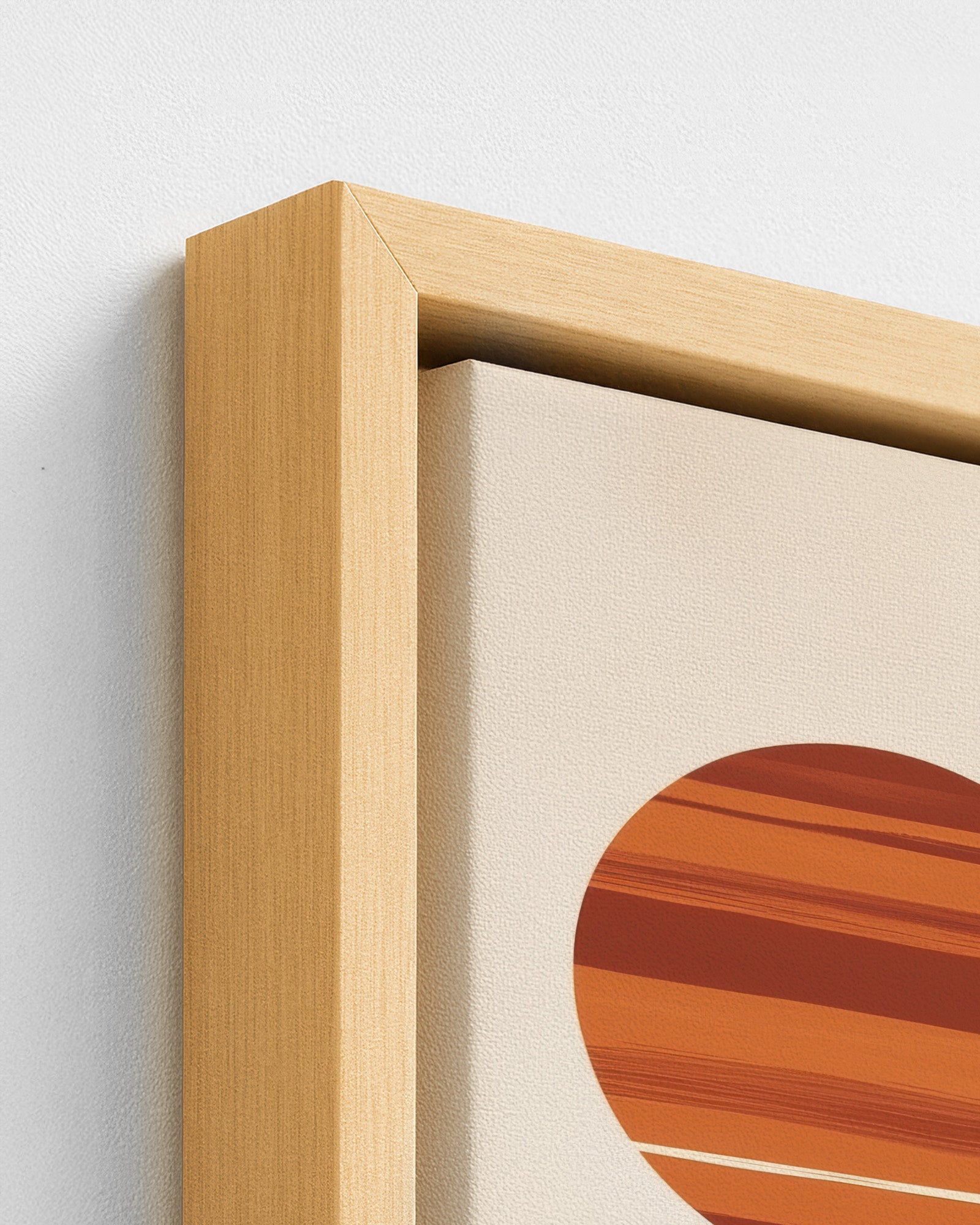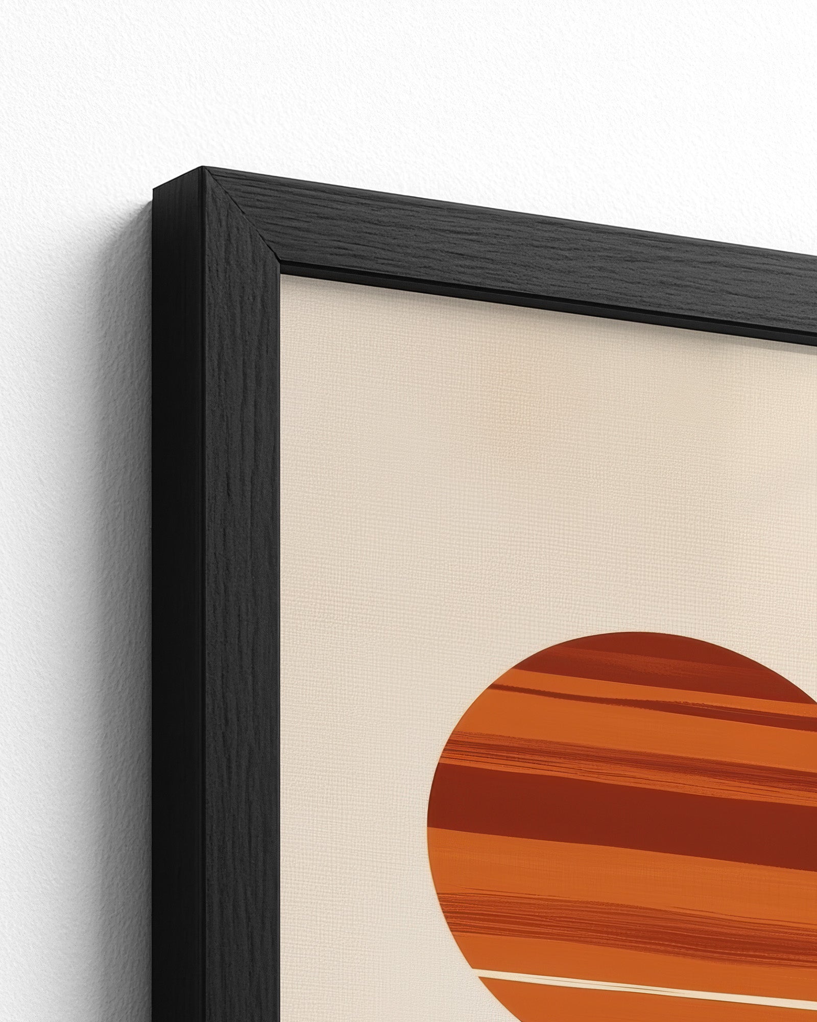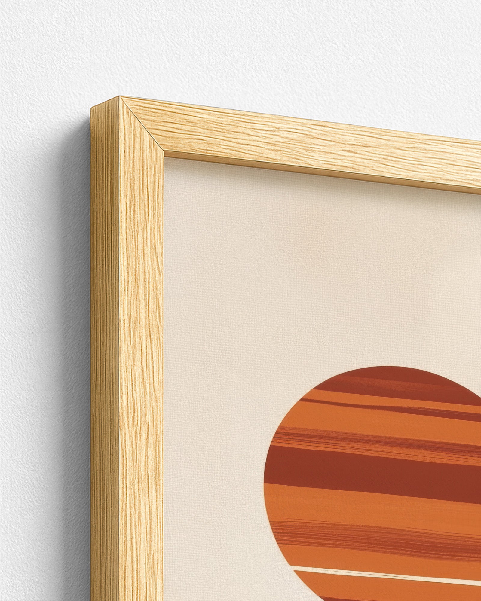 Premium artwork printed on high-quality paper, professionally mounted within a durable pine wood frame.