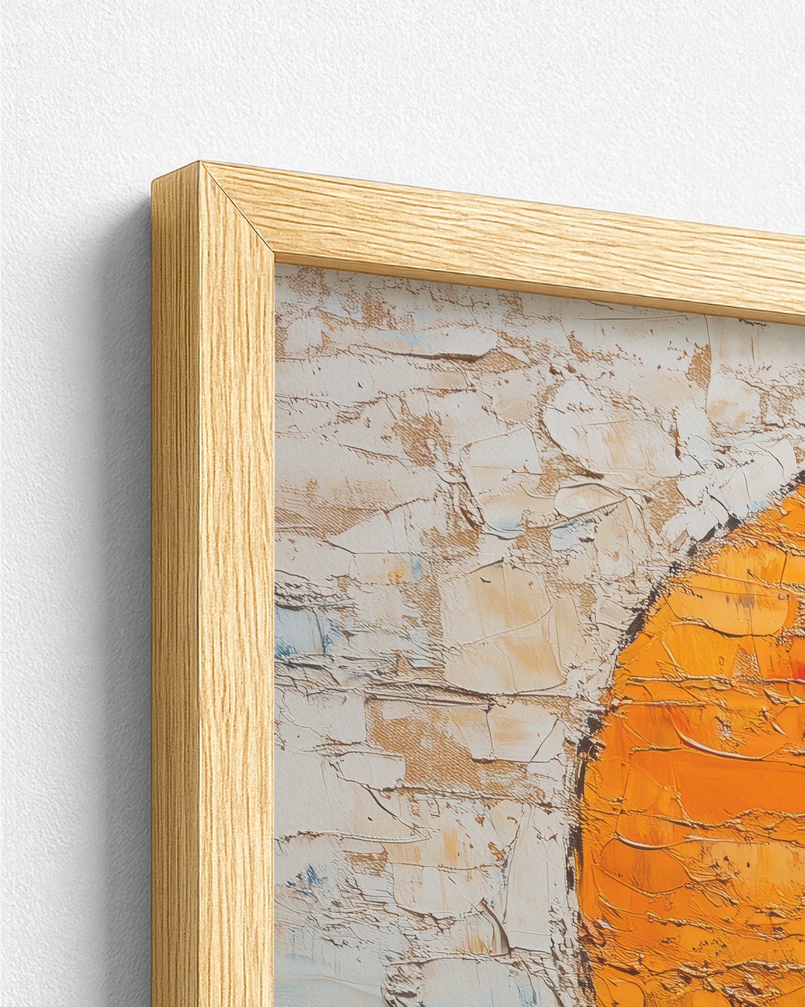 Premium artwork printed on high-quality paper, professionally mounted within a durable pine wood frame.