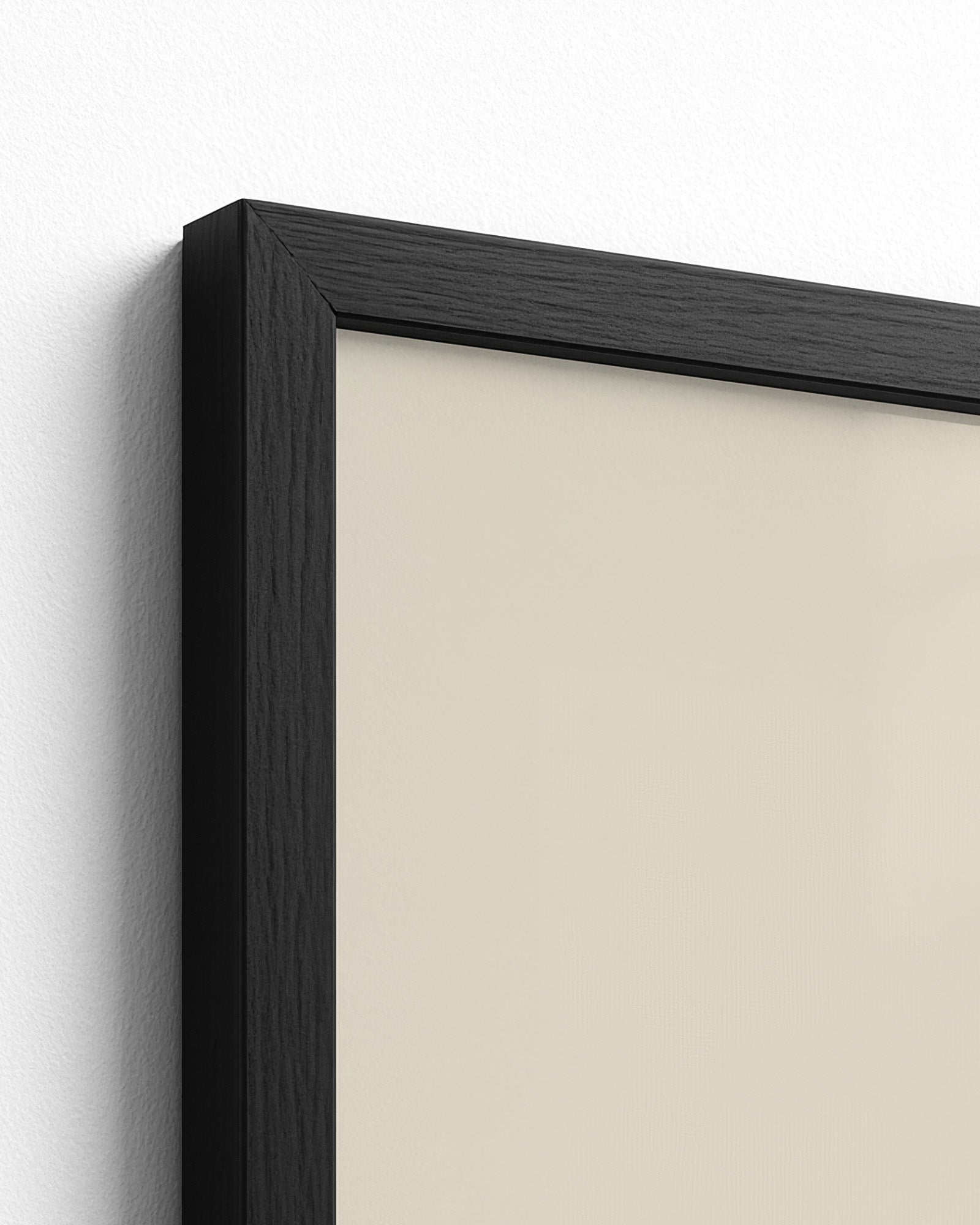 Premium artwork printed on high-quality paper, professionally mounted within a durable pine wood frame.