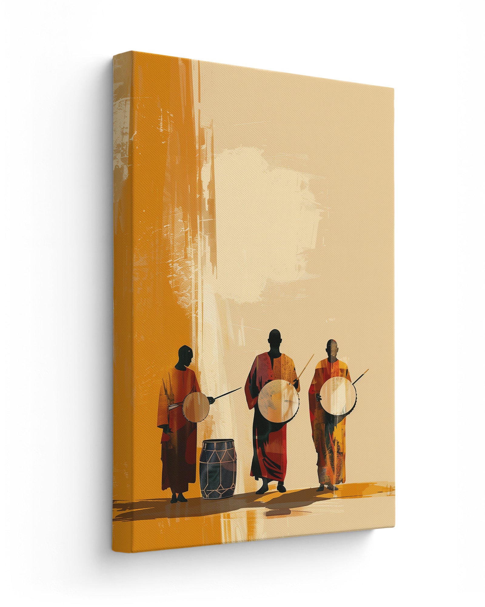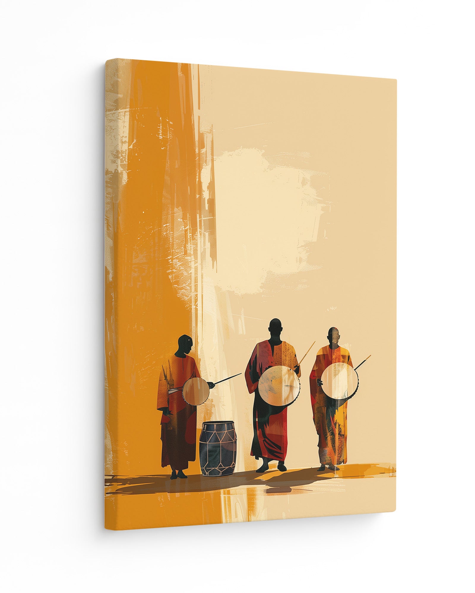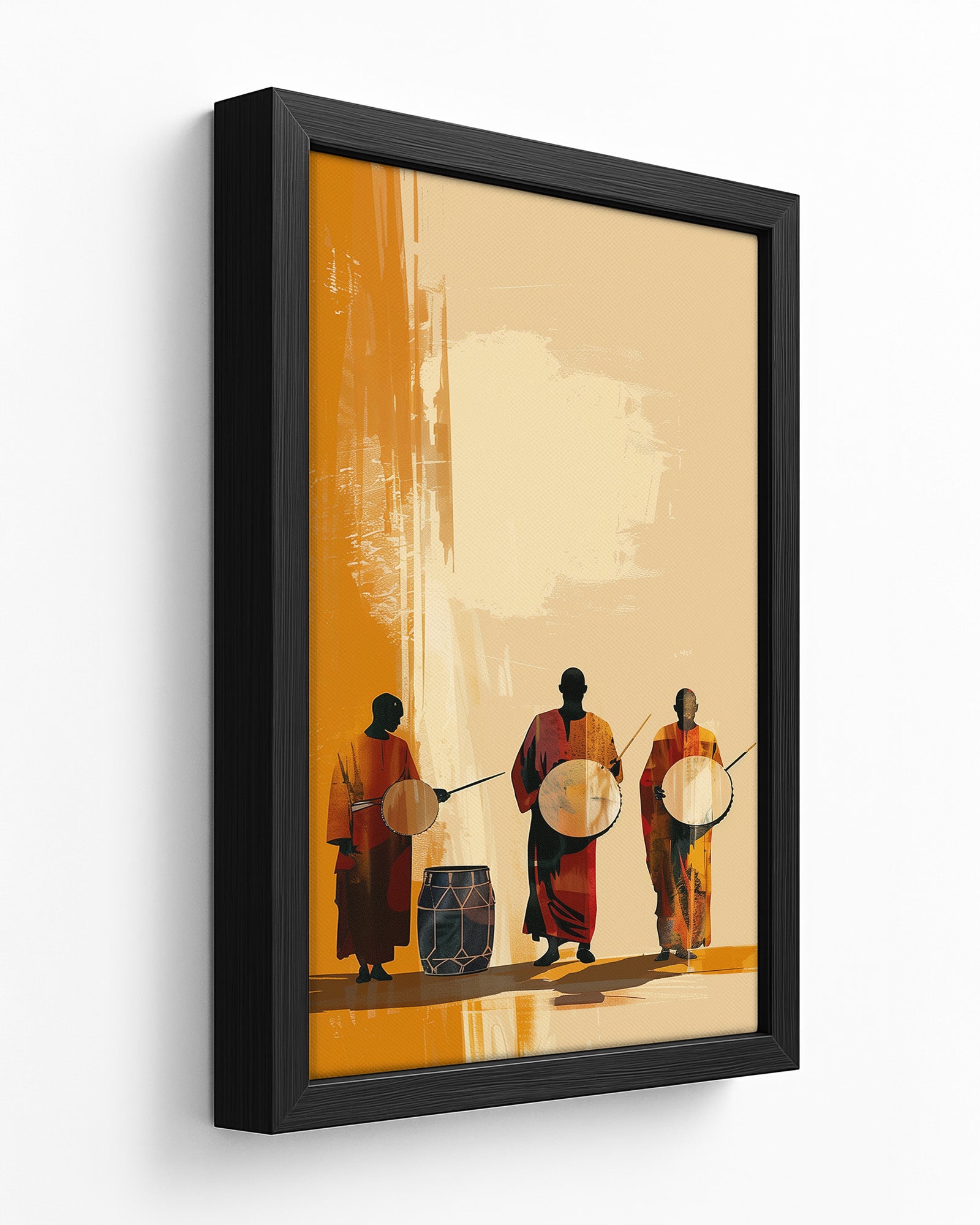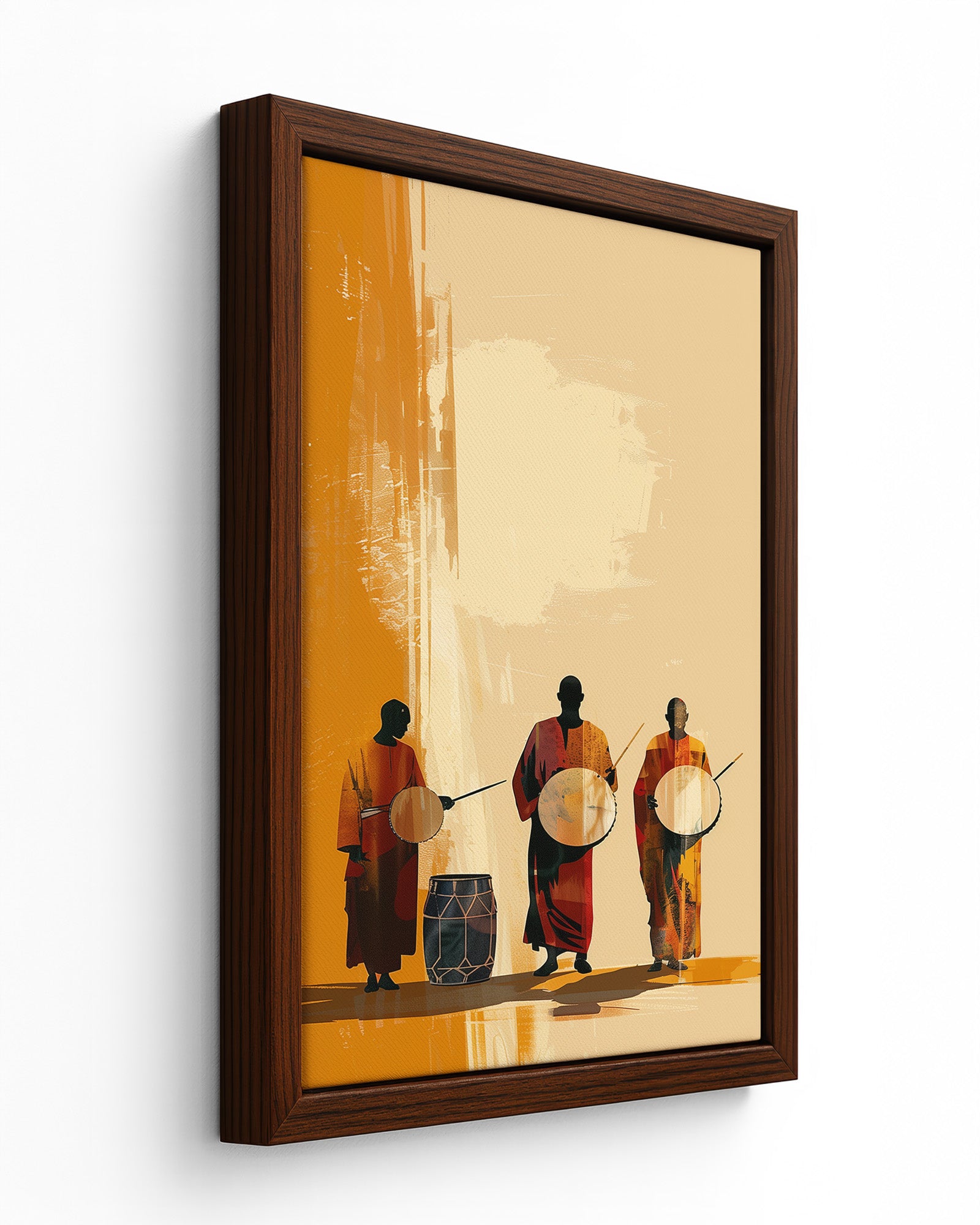 Immerse yourself in the soulful rhythm of African heritage with this minimalist art piece. Featuring a serene scene of drummers in muted earth tones, the artwork captures subtle motion and cultural celebration in an elegant, understated style.