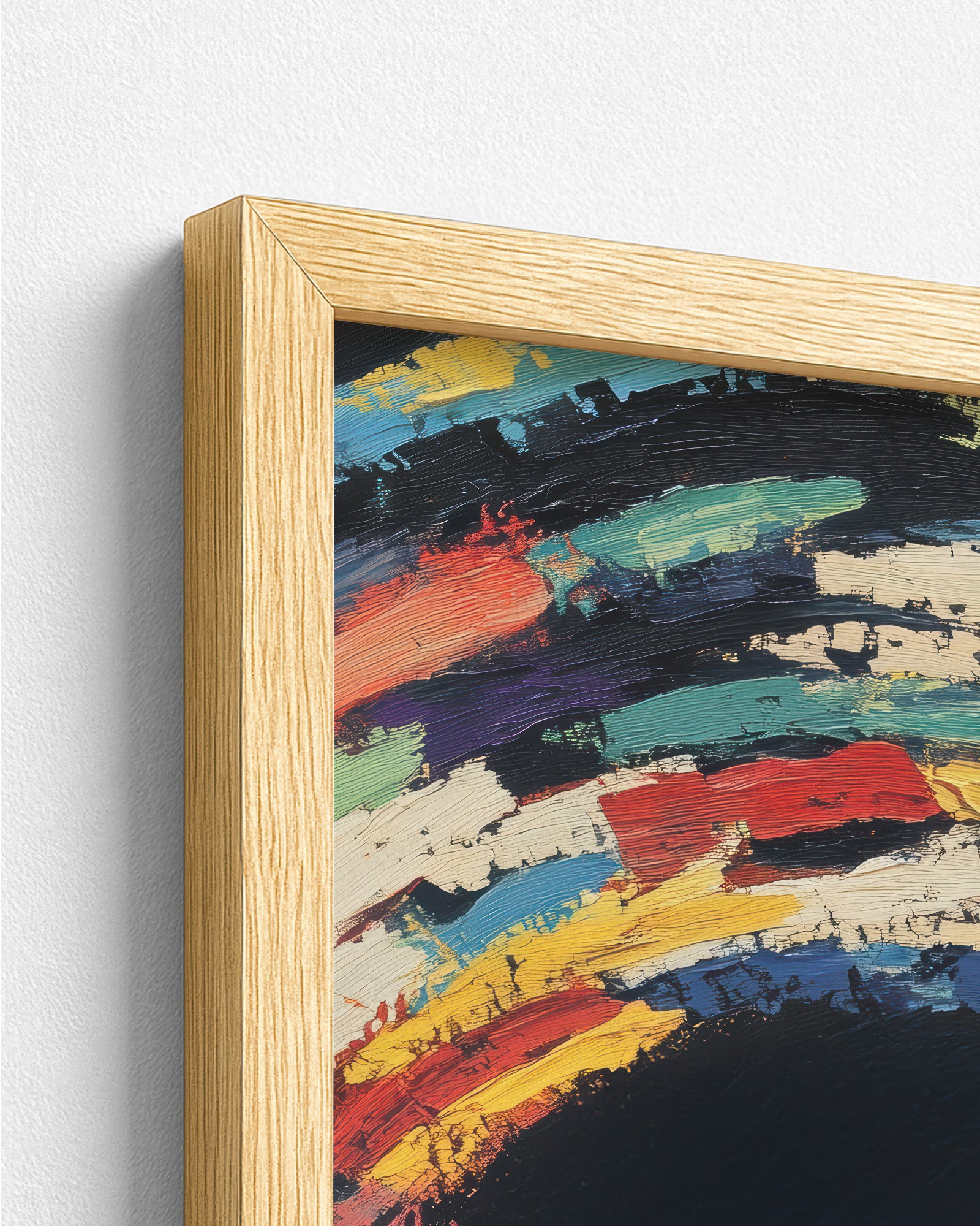 The canvas is stretched over a slim wooden frame with a 2–3 cm depth.