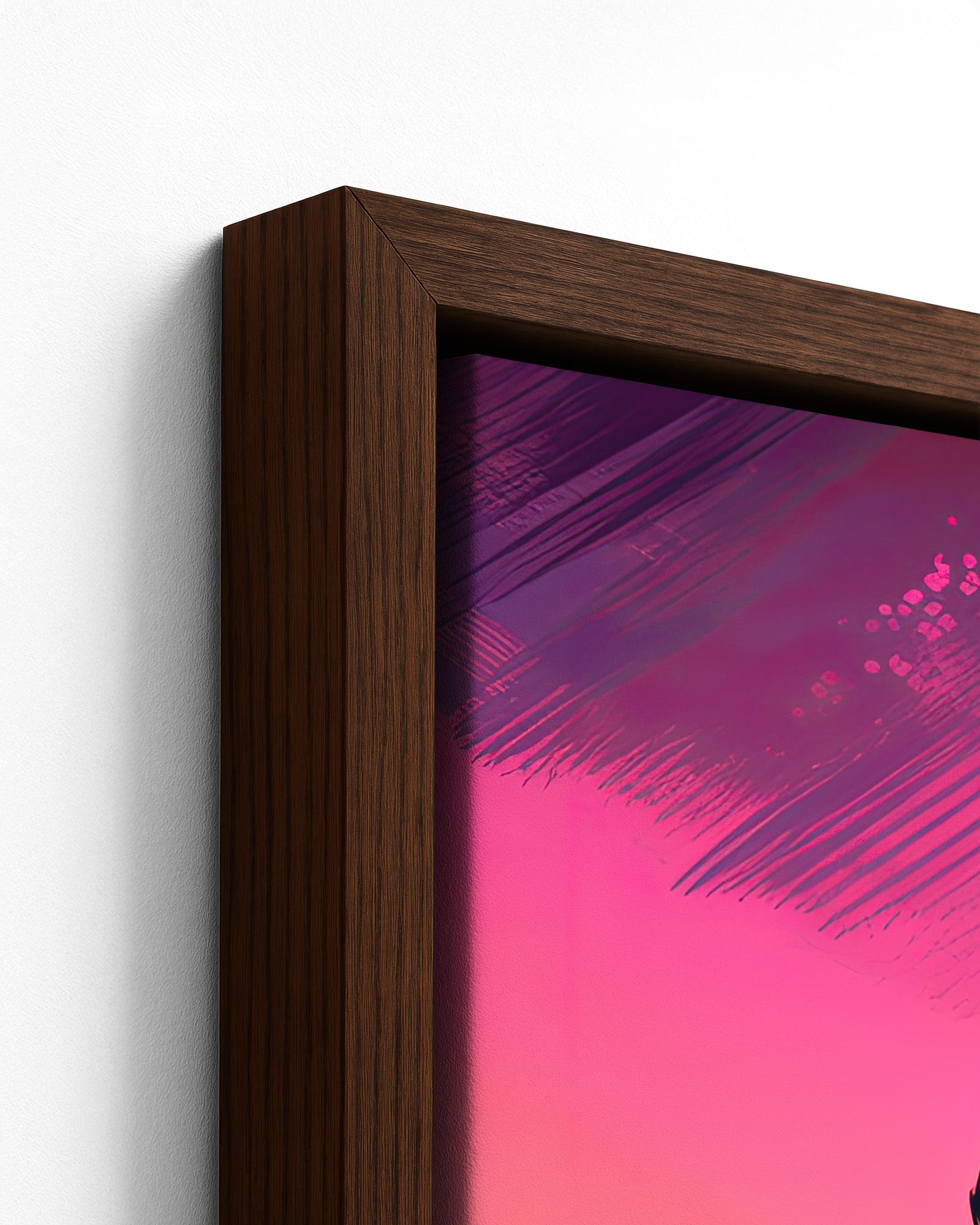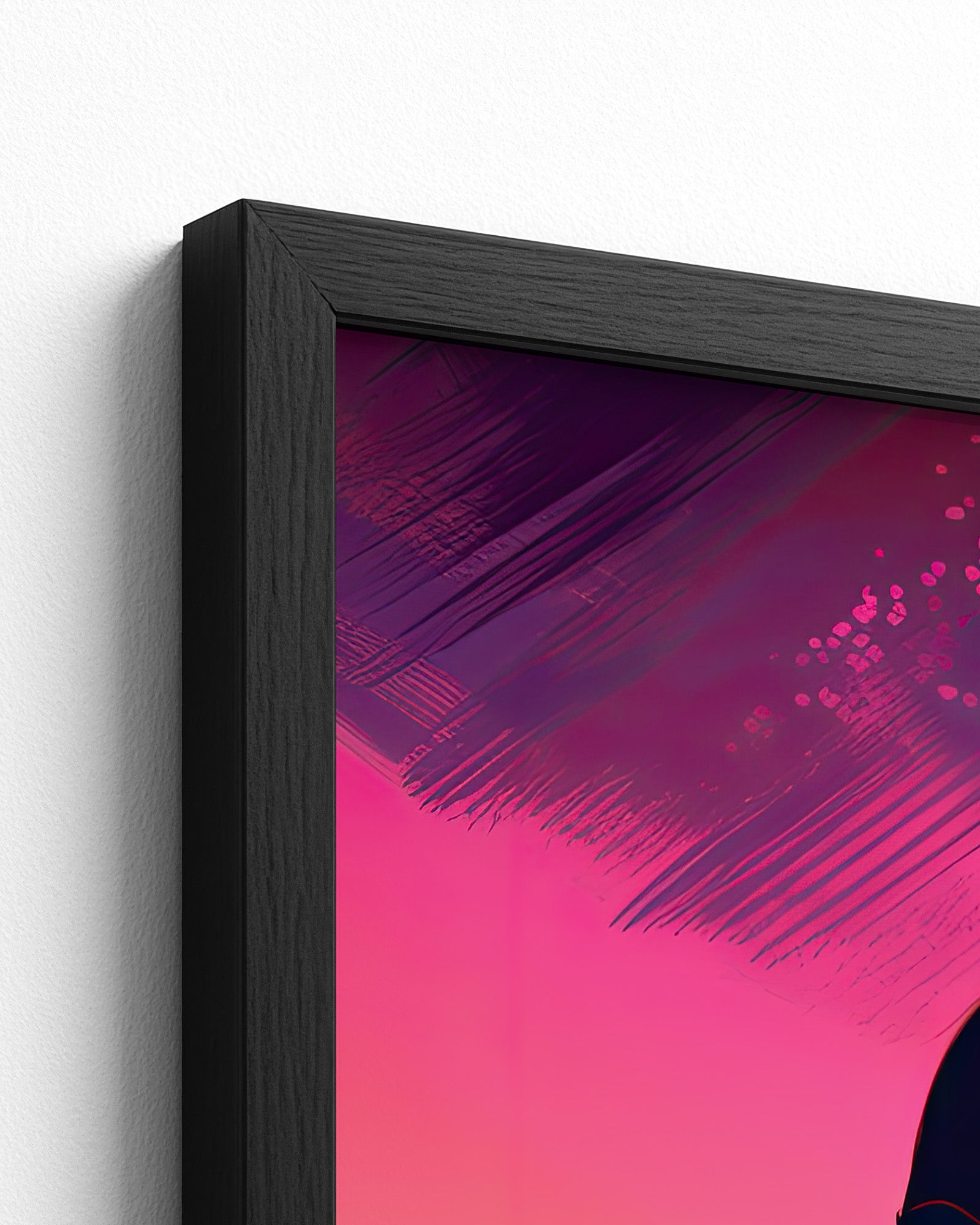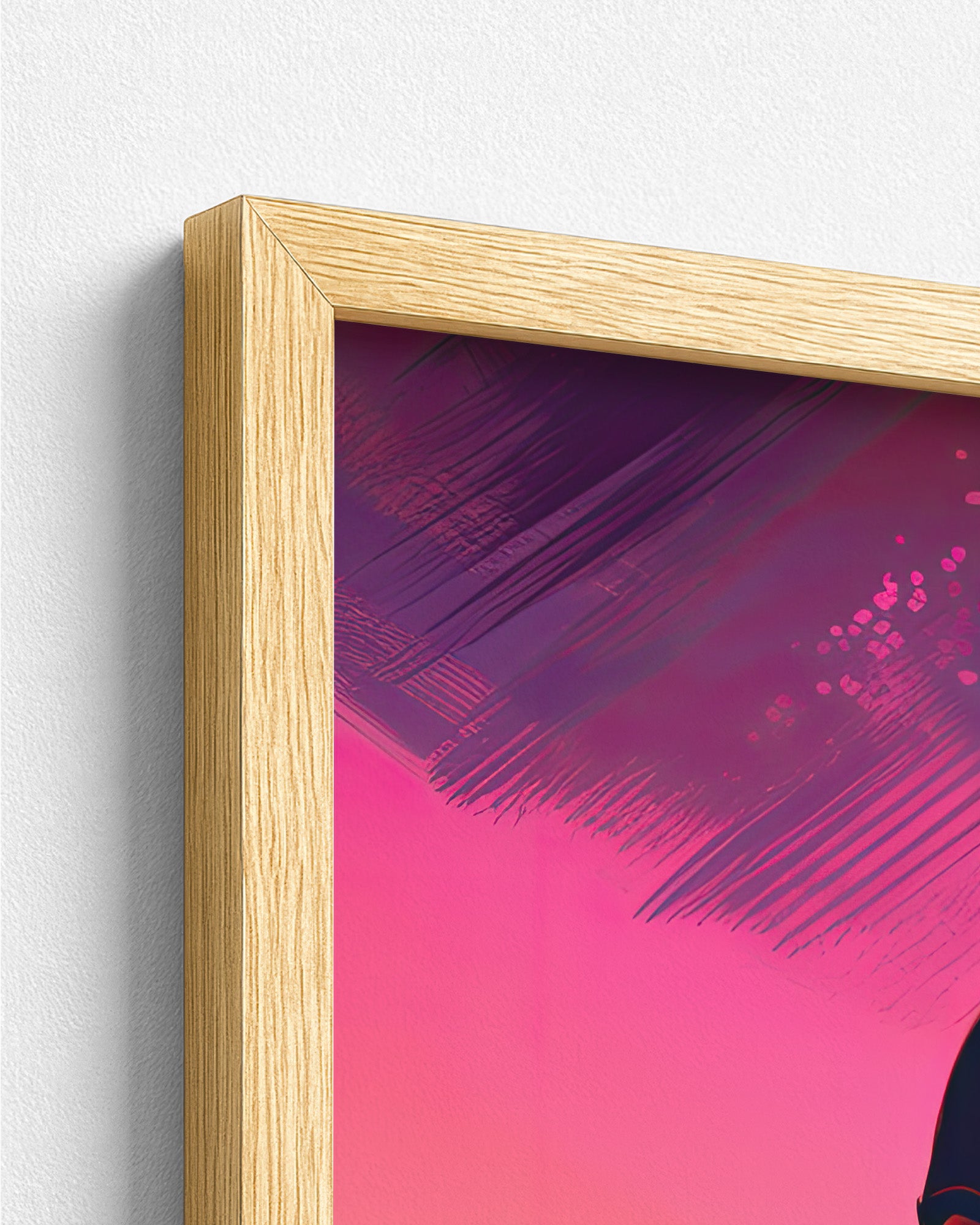 Premium artwork printed on high-quality paper, professionally mounted within a durable pine wood frame.