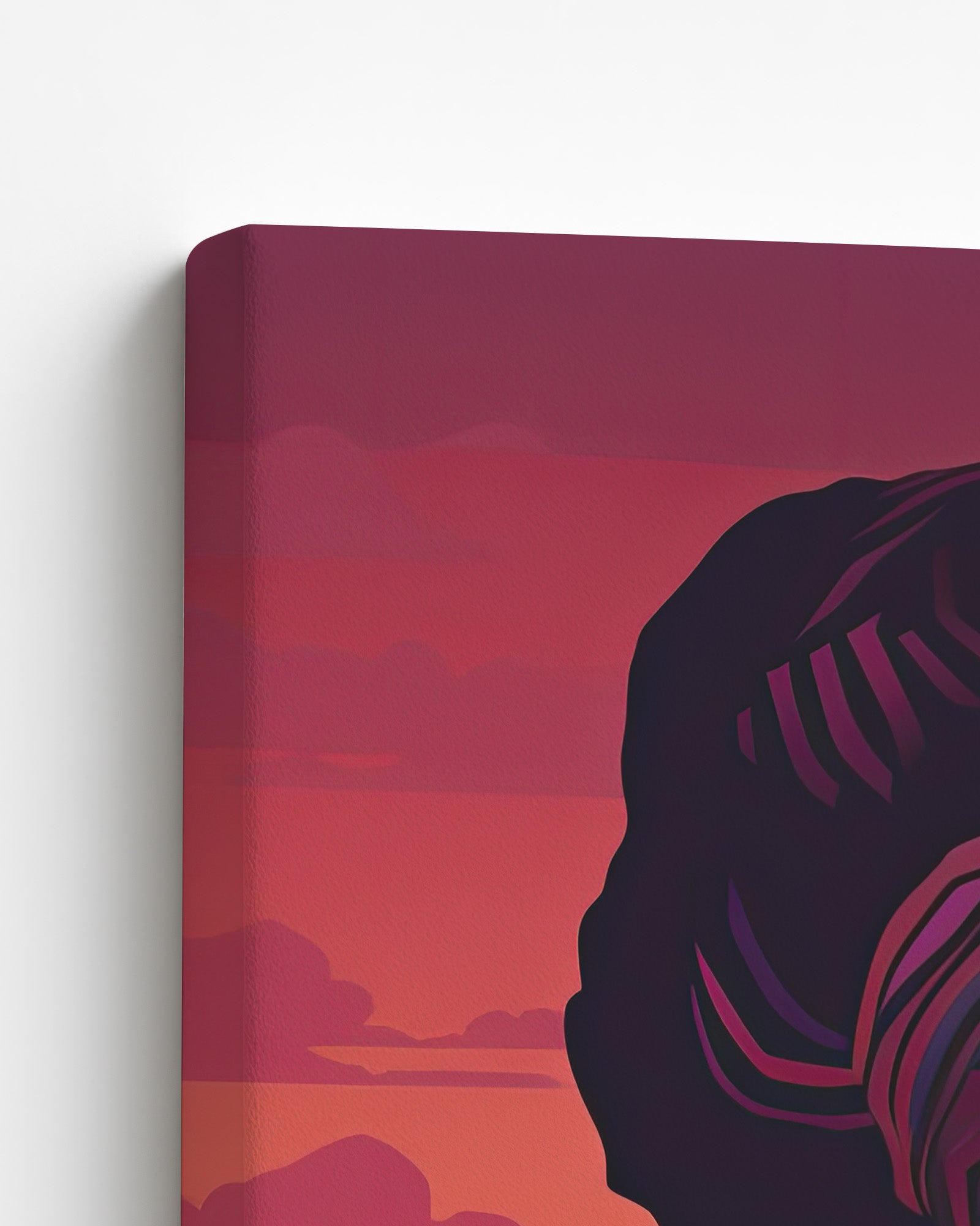 Immerse yourself in the breathtaking beauty of Zambia's sunset with our captivating oil painting. It features a Zambian lady standing against a mesmerising purple-hued sky, capturing the essence of serenity and natural beauty. The vibrant colours of the setting sun beautifully highlight her silhouette, making this artwork a stunning addition to any home.