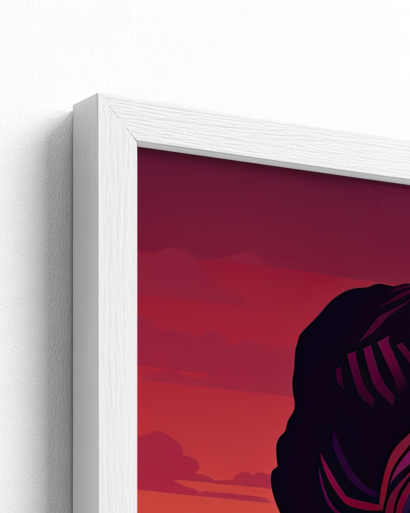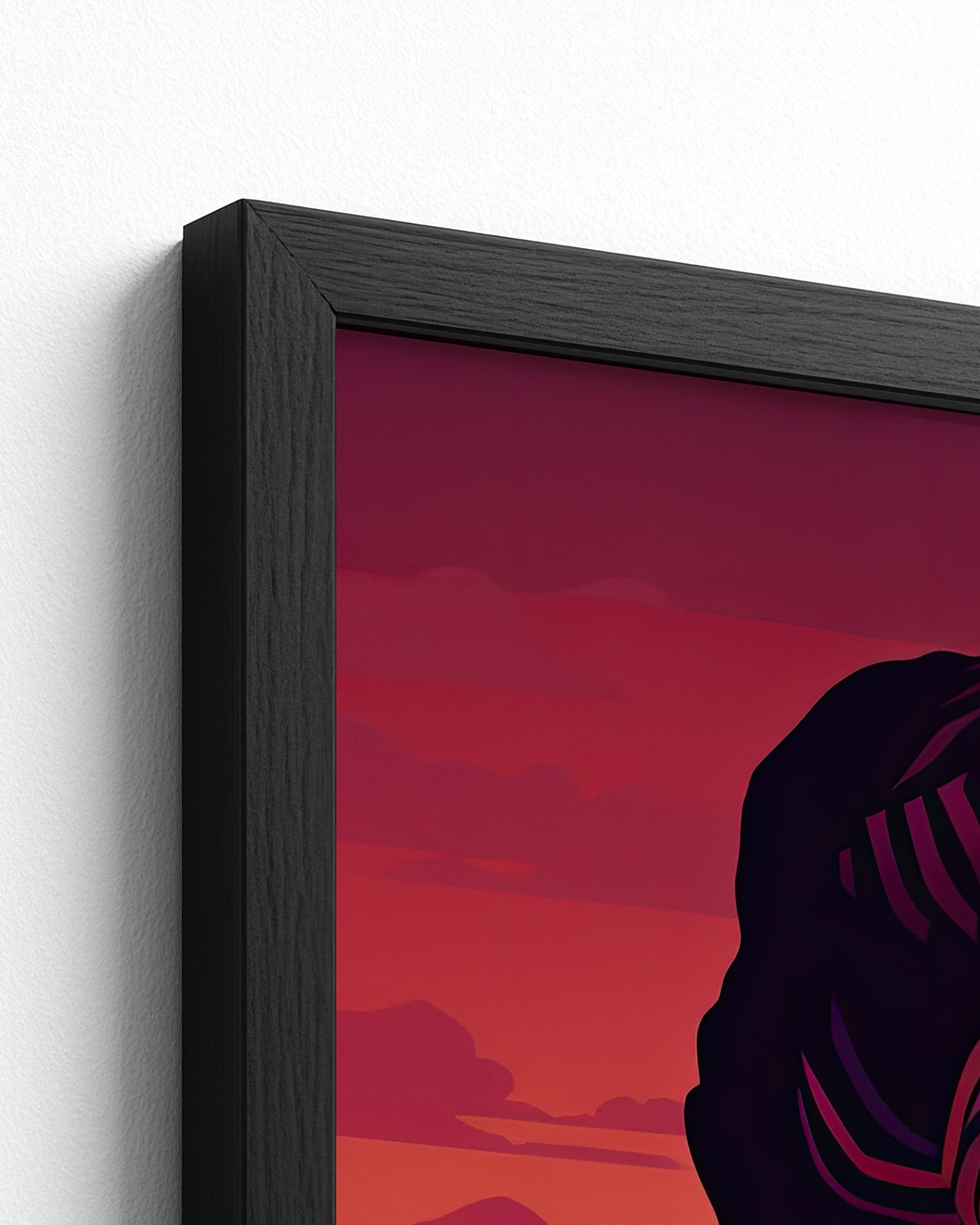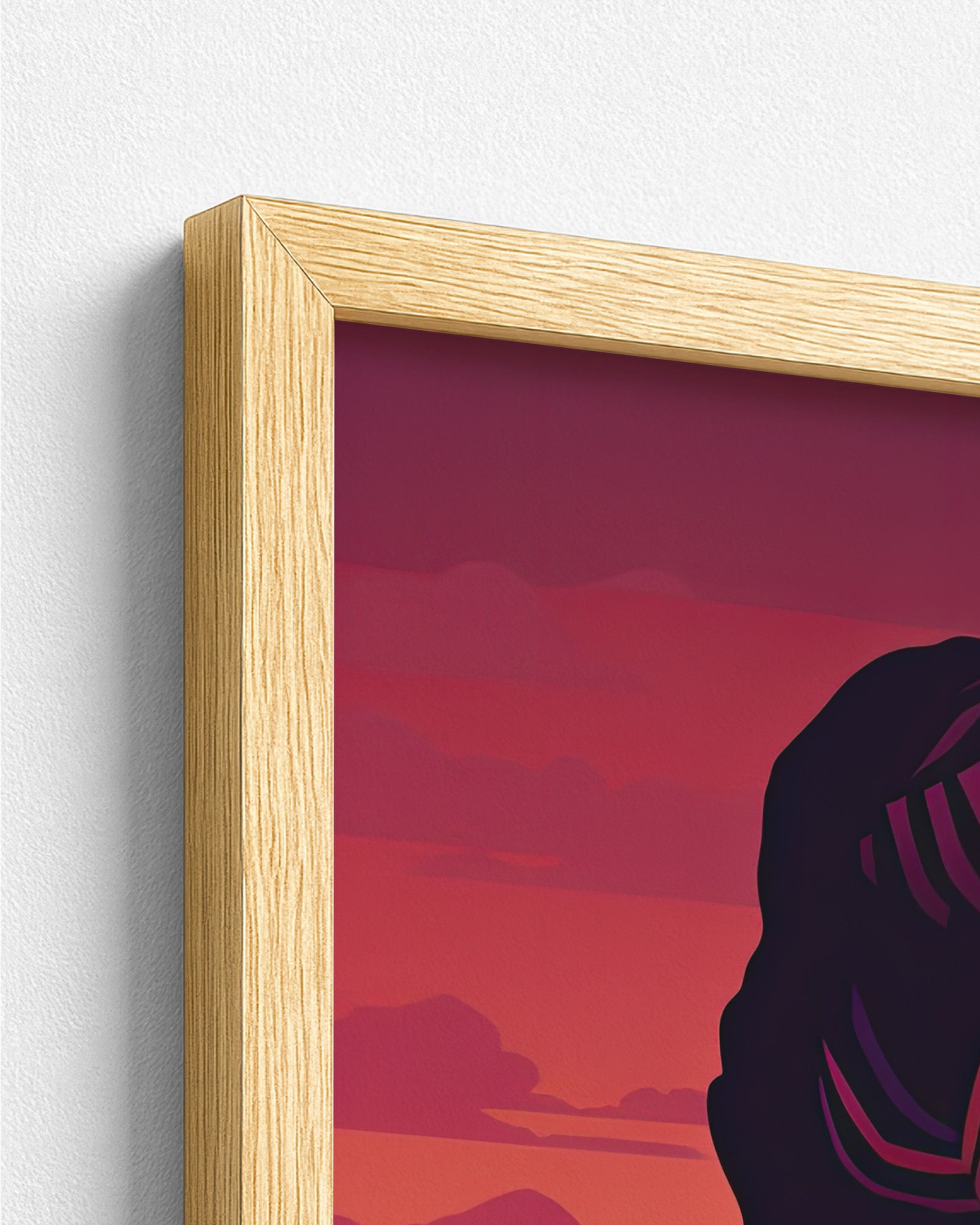 Premium artwork printed on high-quality paper, professionally mounted within a durable pine wood frame.