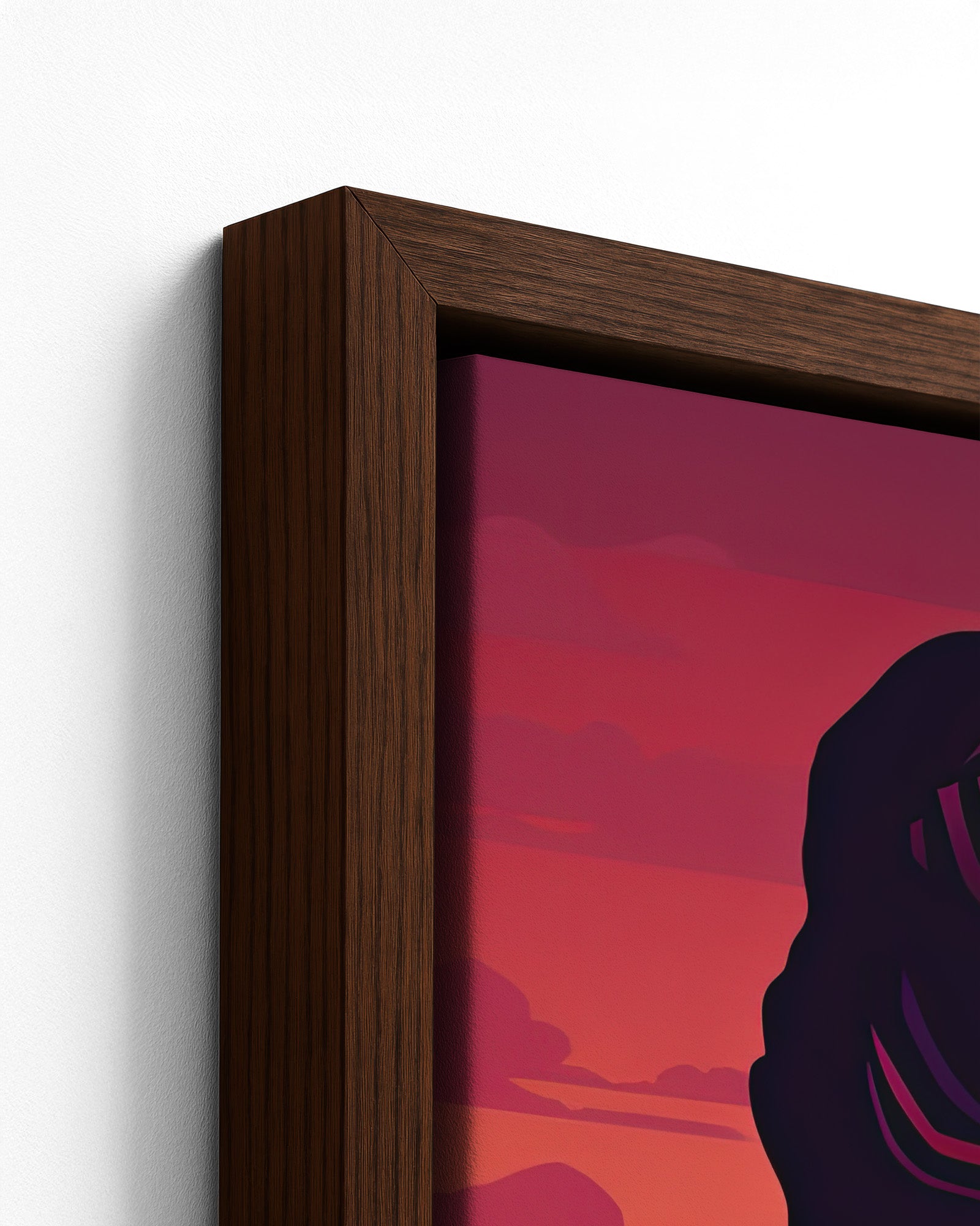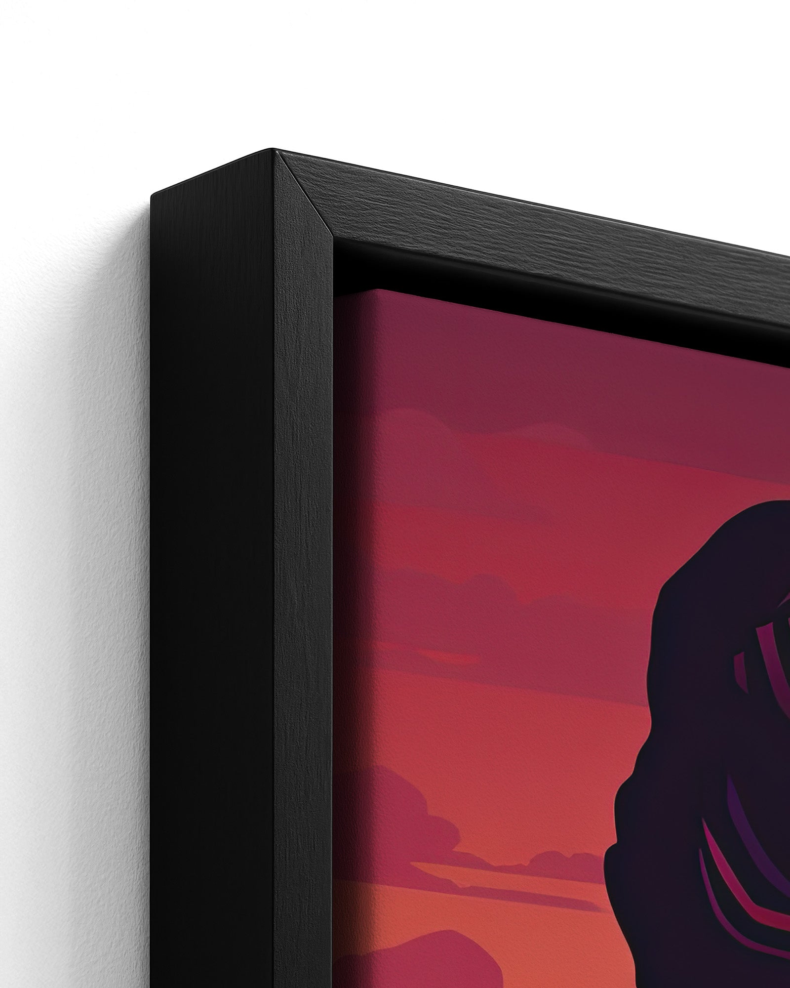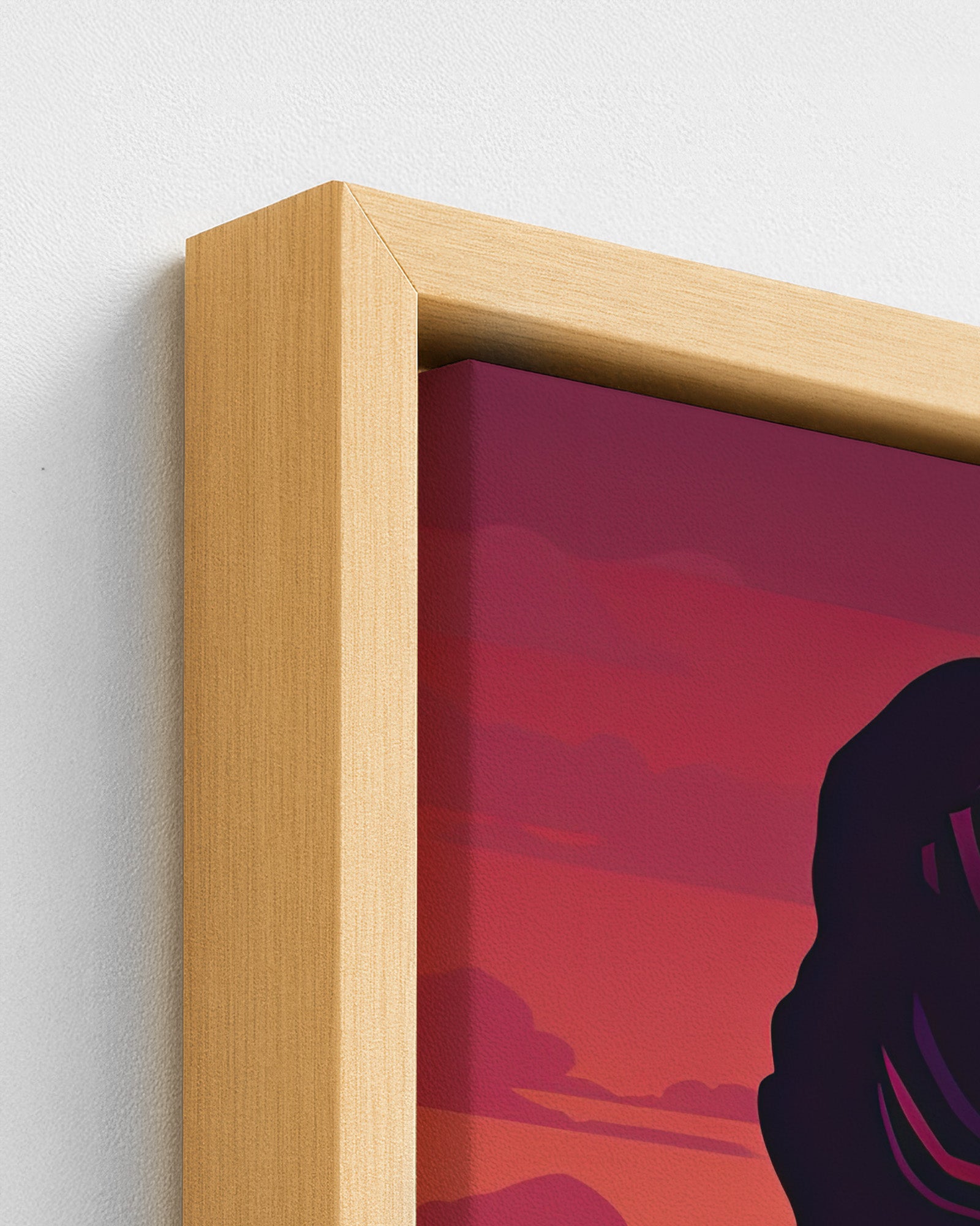 Premium artwork printed on high-quality paper, professionally mounted within a durable pine wood frame.