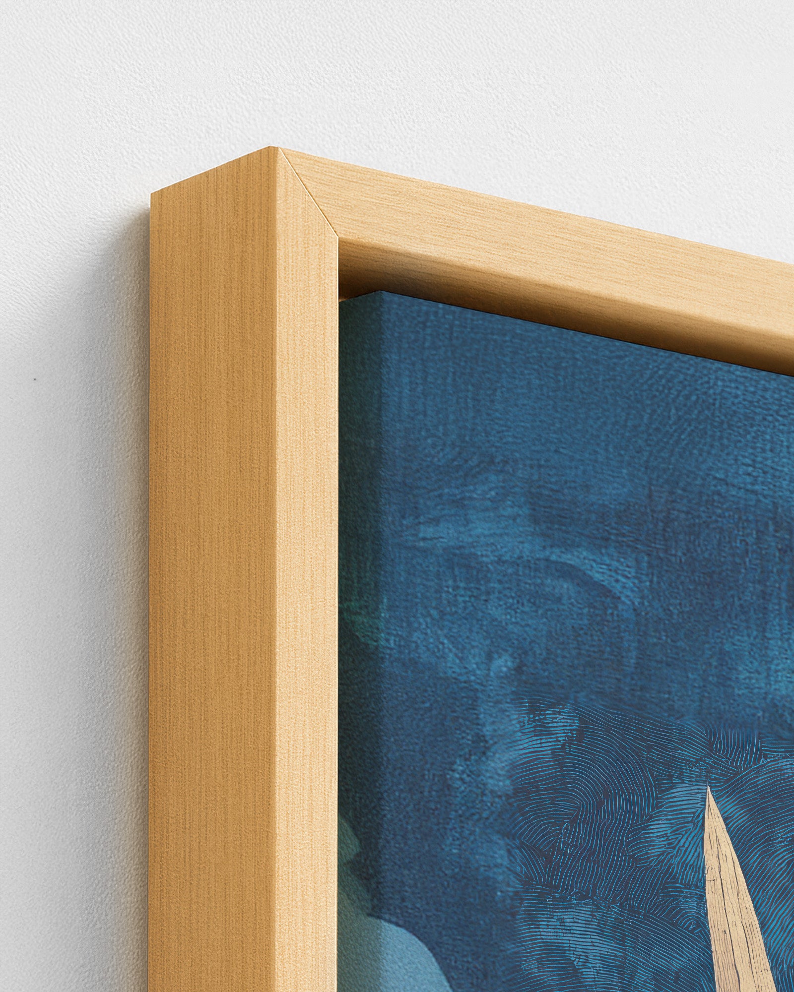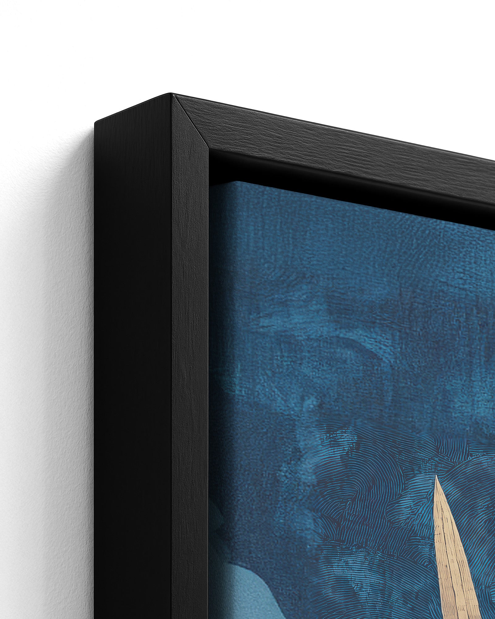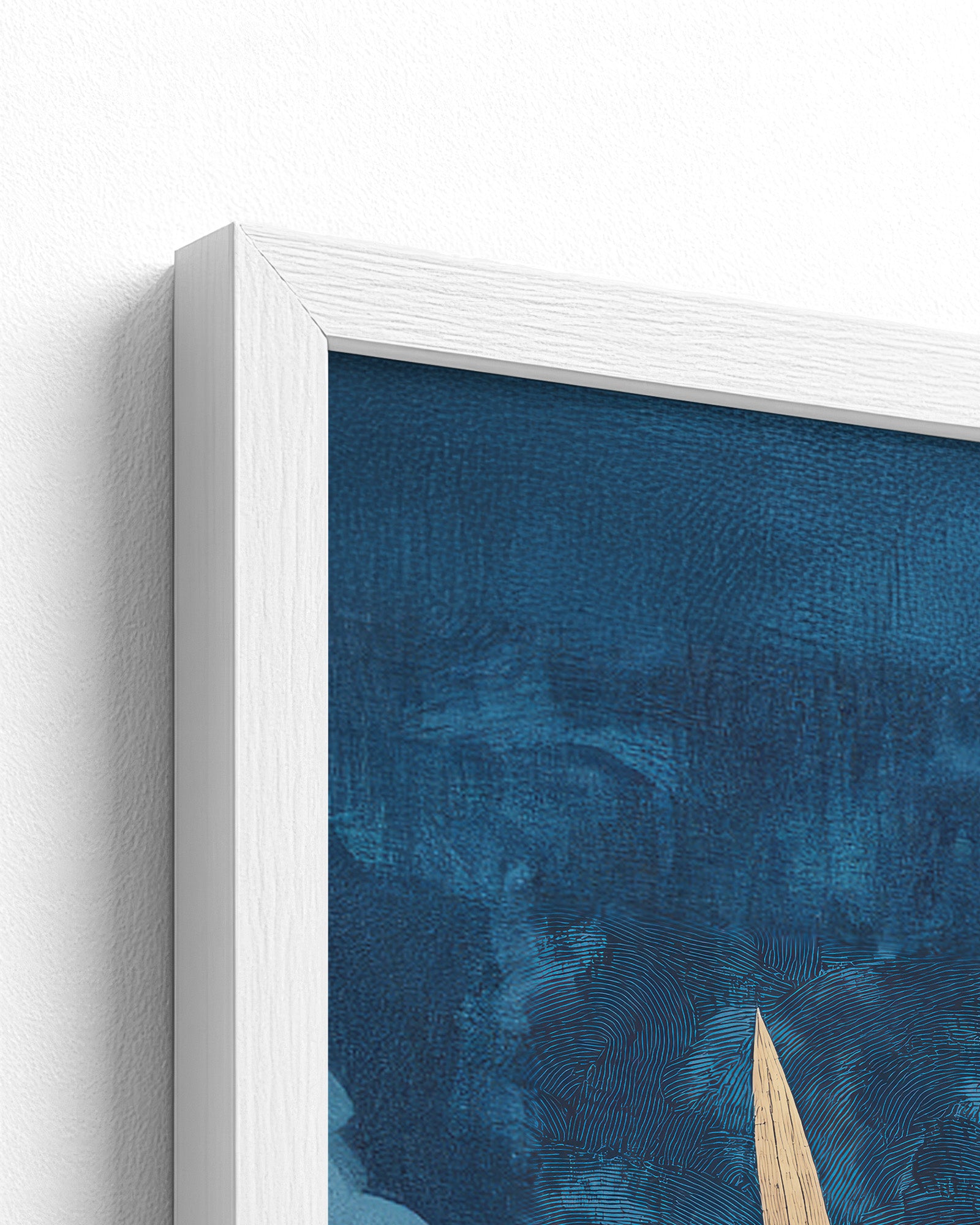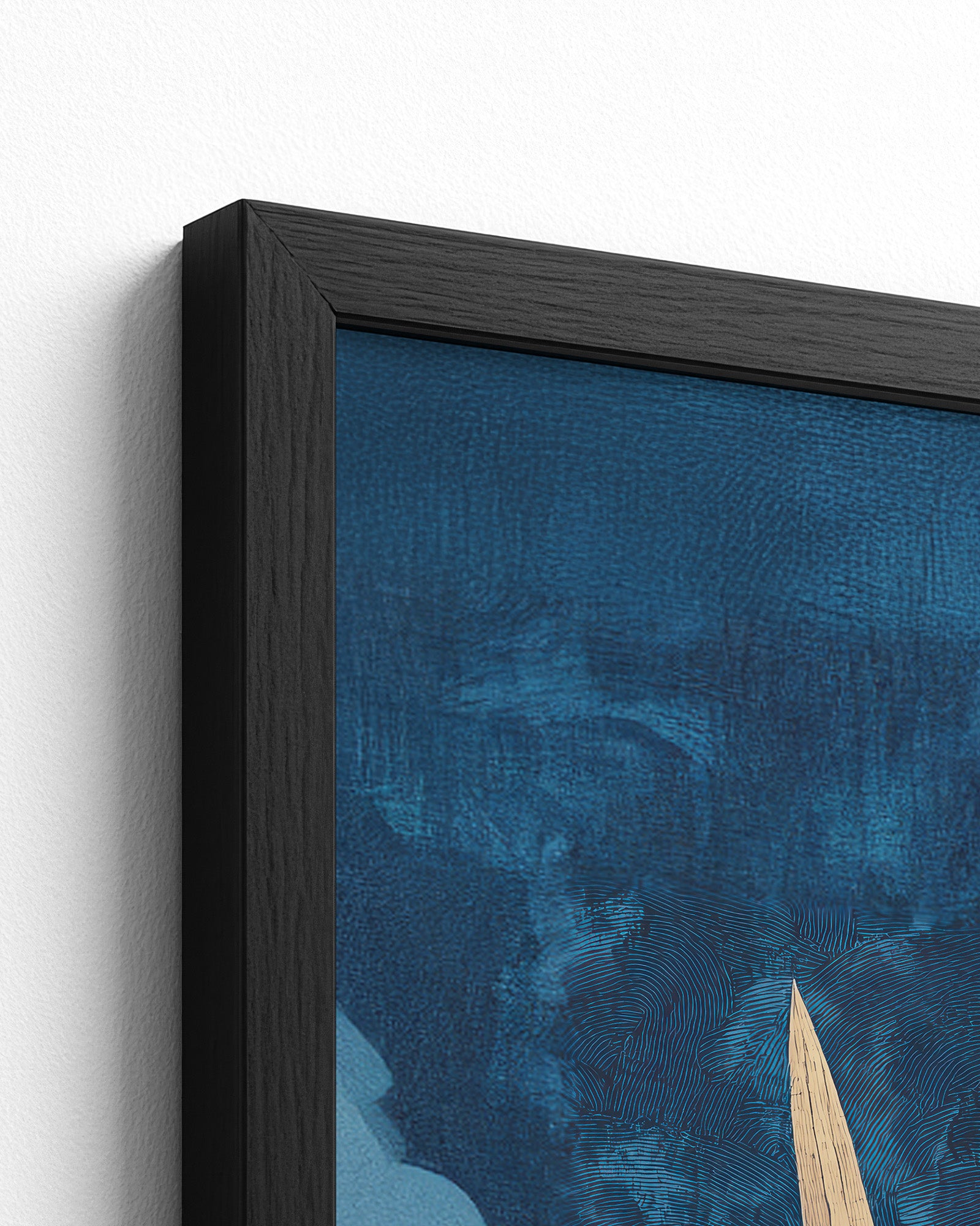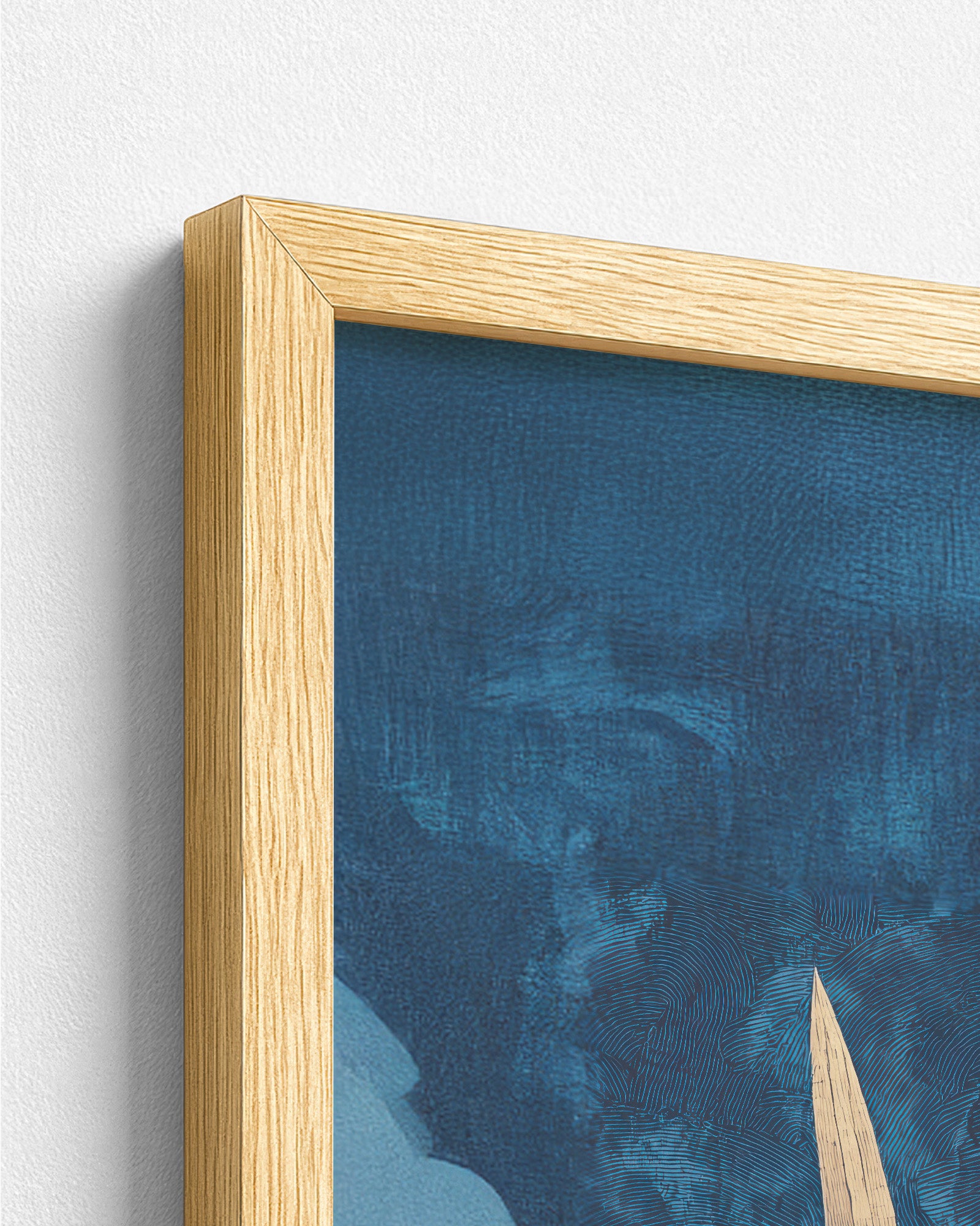 Premium artwork printed on high-quality paper, professionally mounted within a durable pine wood frame.